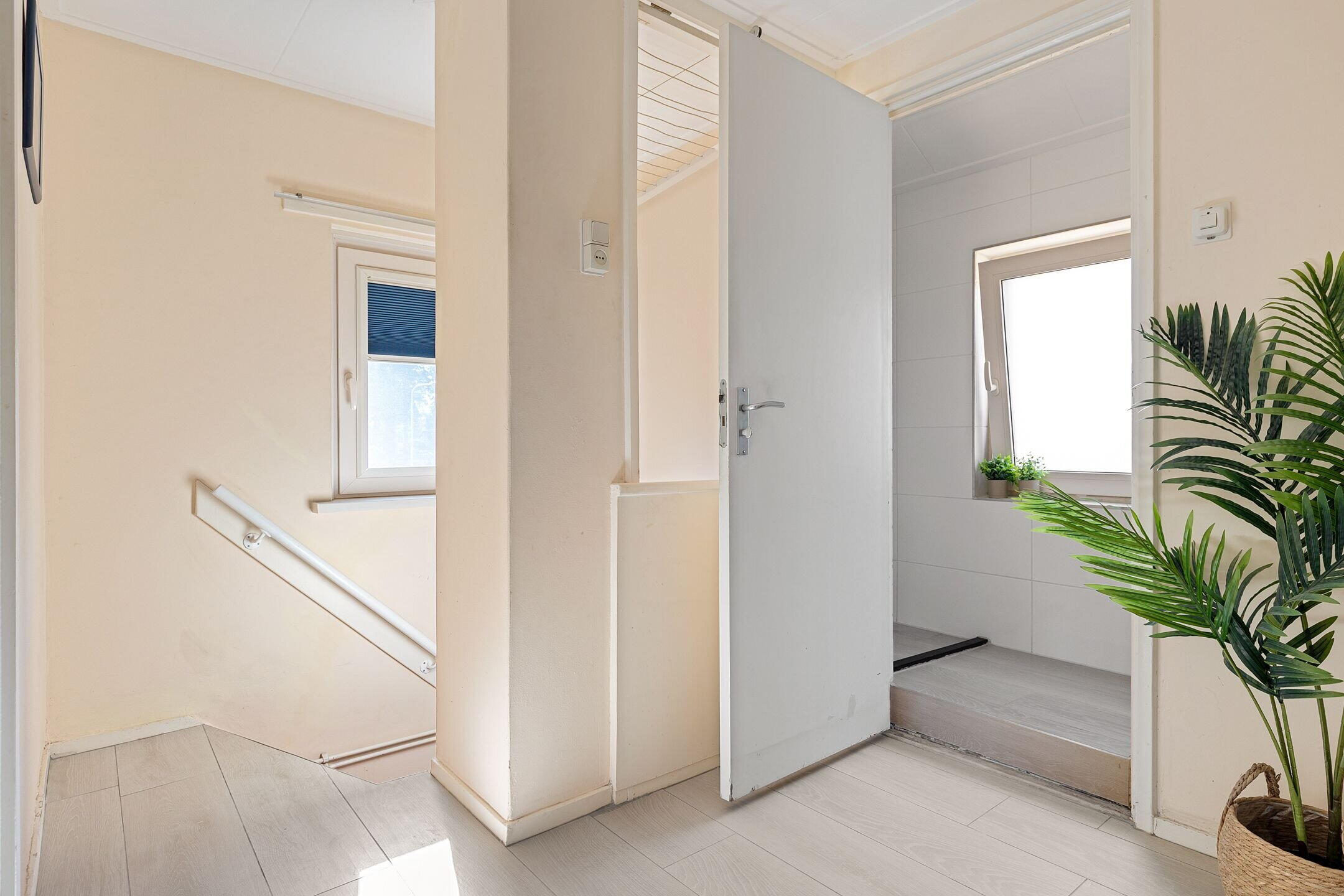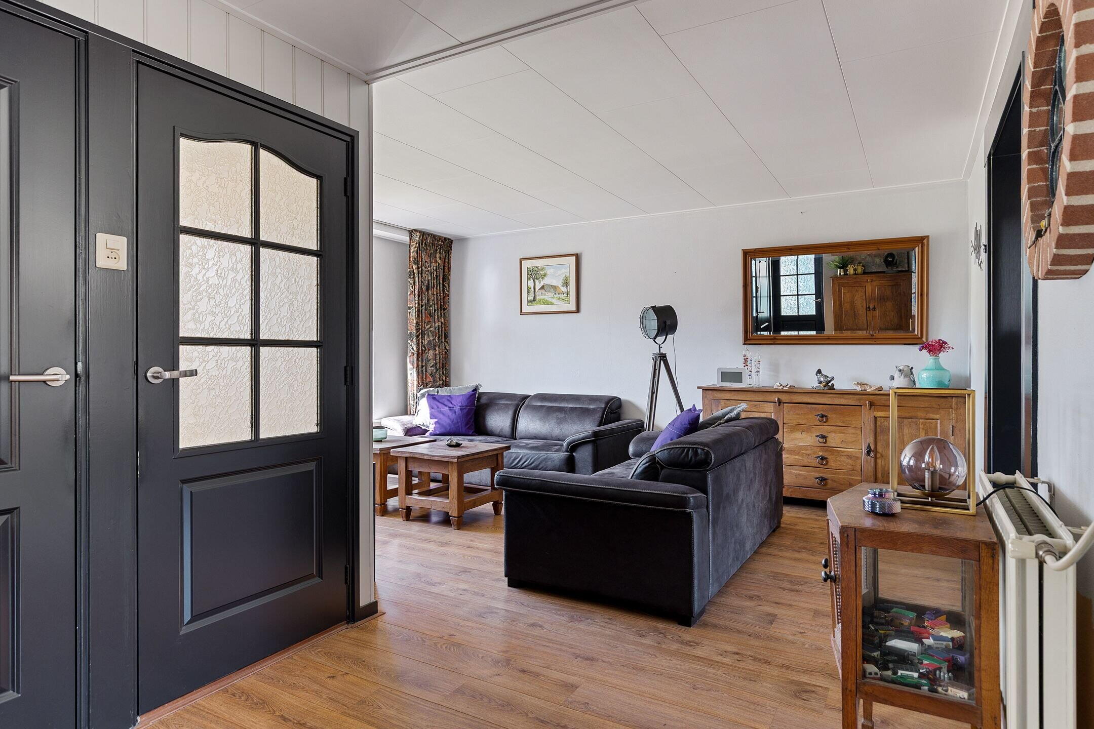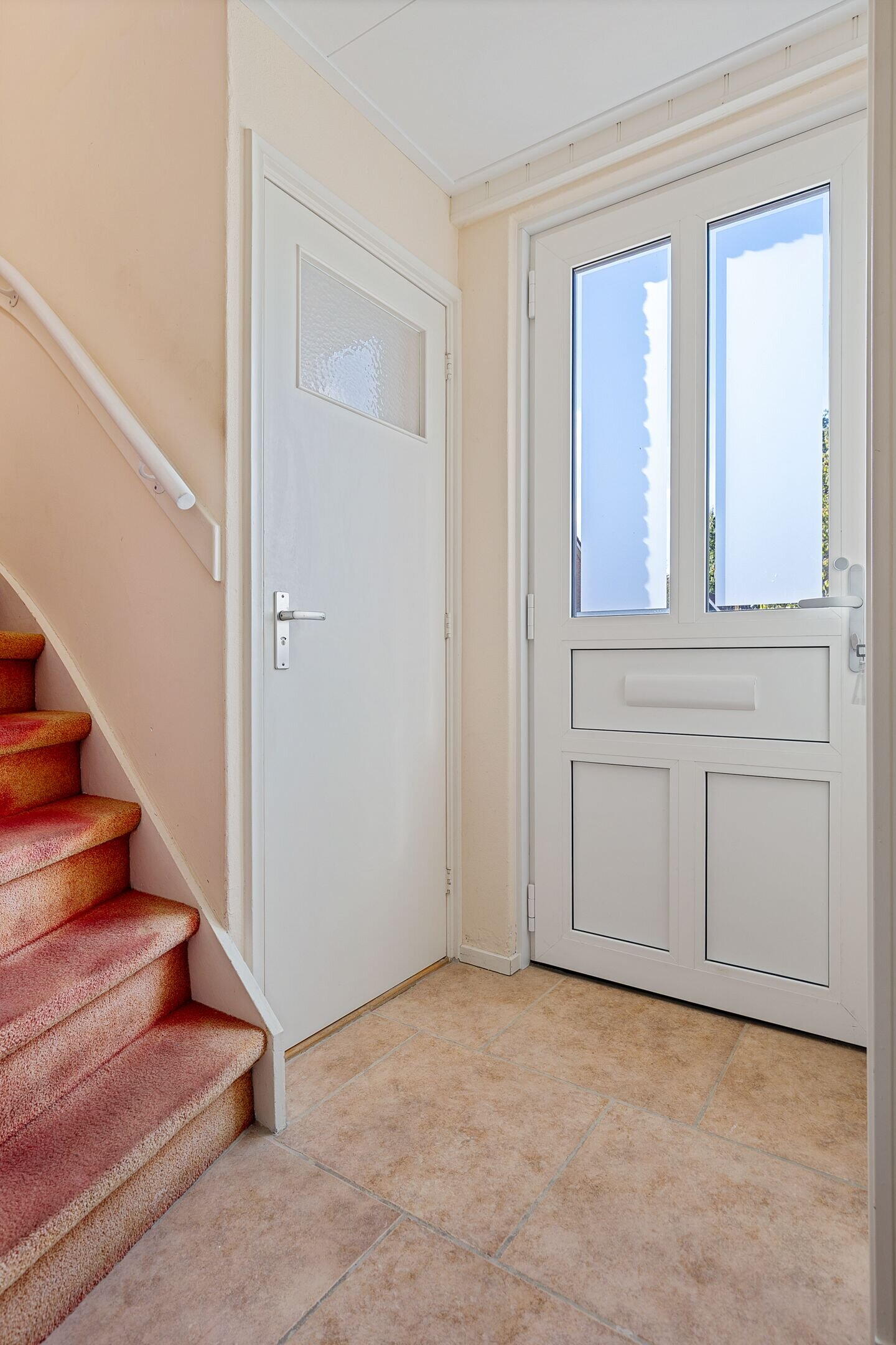 Entree met hal, meterkast, trapopgang naar de eerste verdieping en modern toilet met wandcloset. De royale, lichte woonkamer is voorzien van een nette laminaatvloer en kunststof kozijnen. De voormalige bijkeuken, grenzend aan de woonkamer, is omgebouwd tot een sfeervolle hobby- of werkkamer.