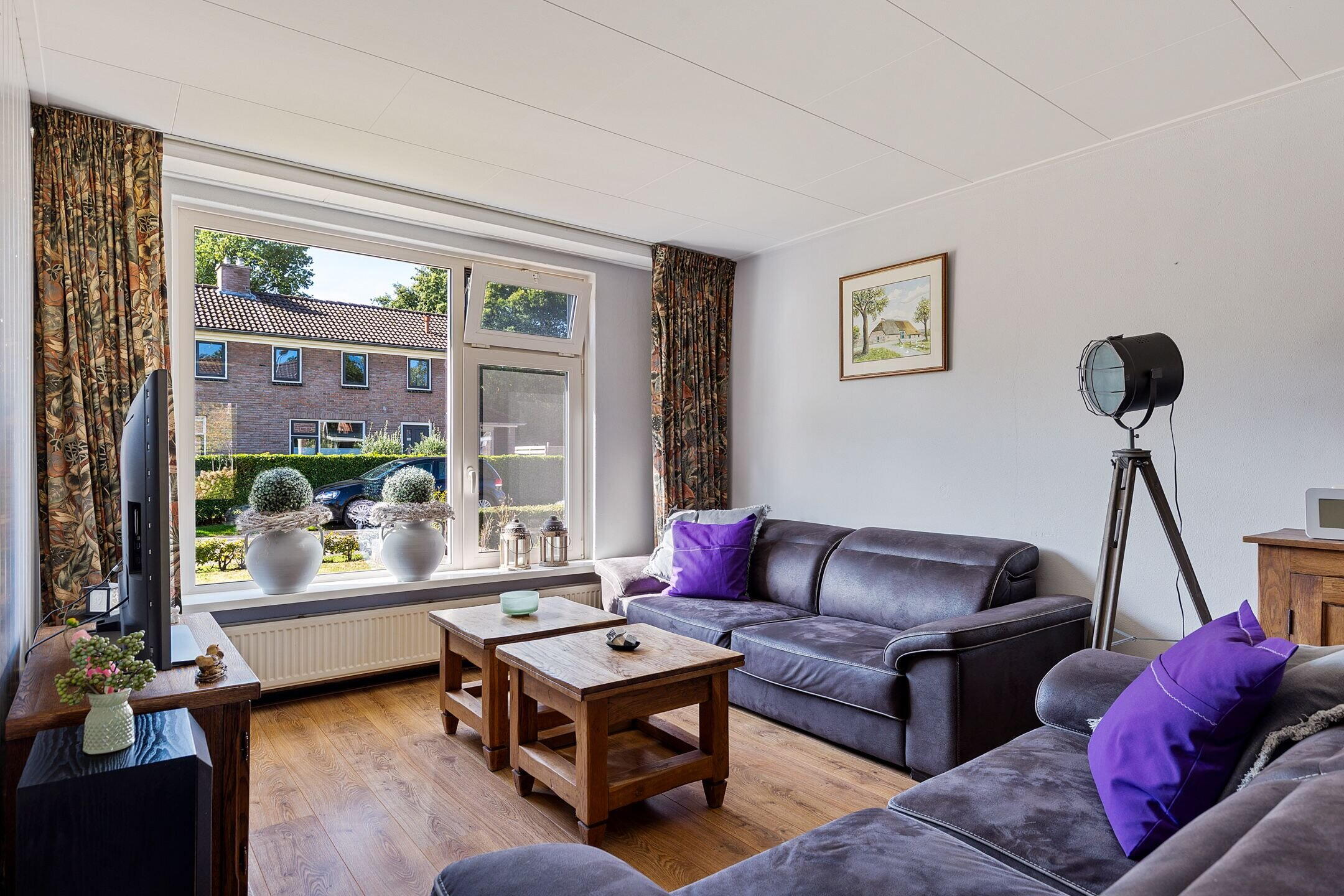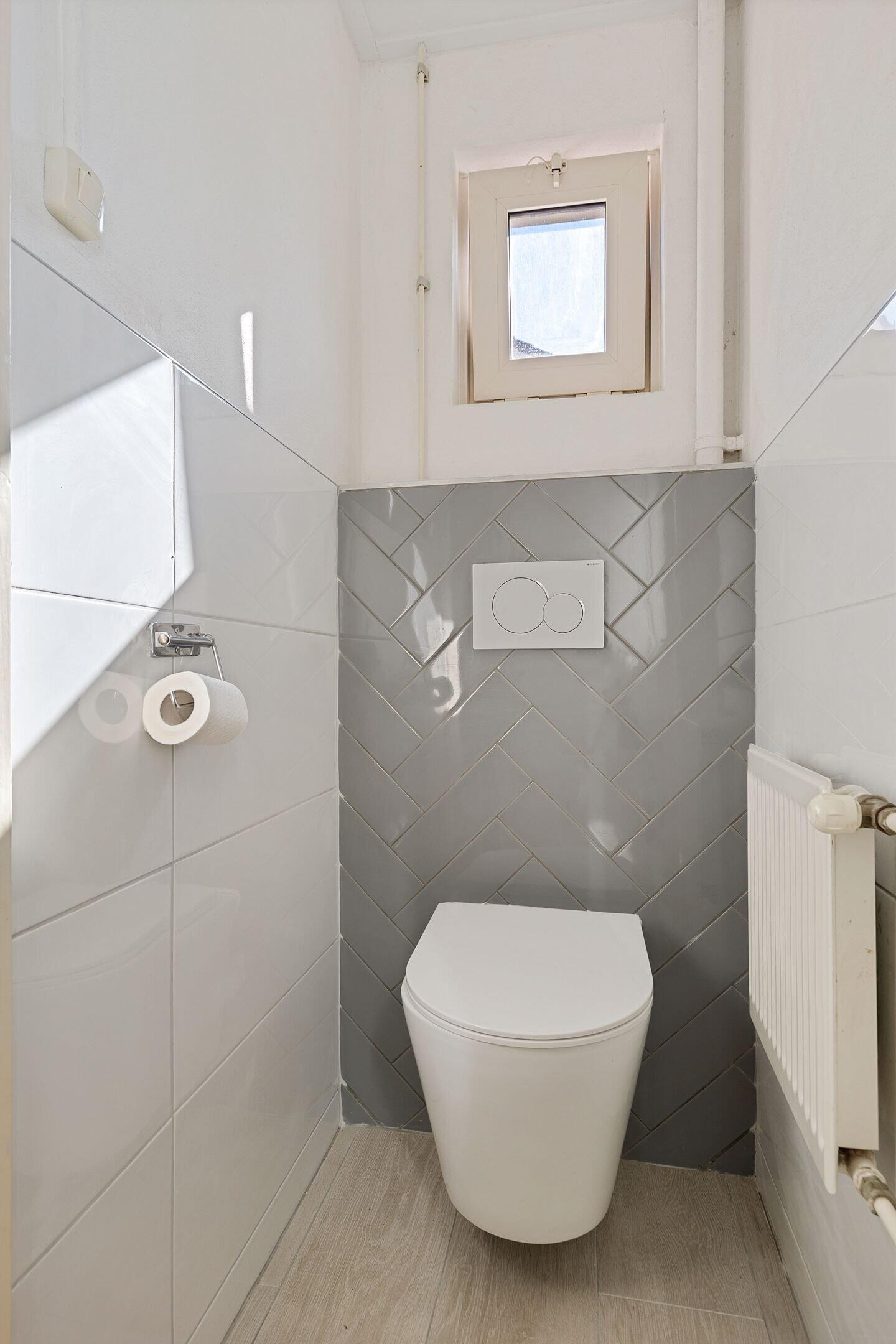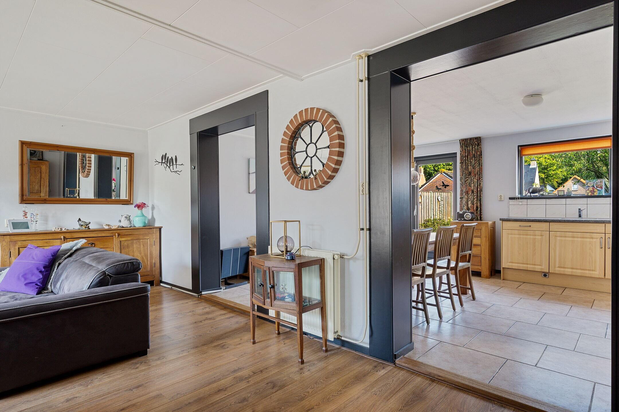 Entree met hal, meterkast, trapopgang naar de eerste verdieping en modern toilet met wandcloset. De royale, lichte woonkamer is voorzien van een nette laminaatvloer en kunststof kozijnen. De voormalige bijkeuken, grenzend aan de woonkamer, is omgebouwd tot een sfeervolle hobby- of werkkamer.